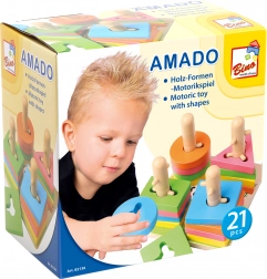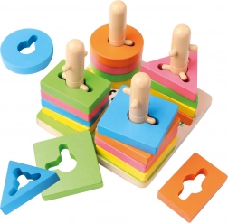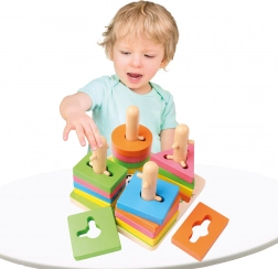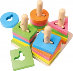 Ontdek een slim ontworpen houten speelgoed voor kinderen vanaf 3 jaar, dat vorm- en kleurherkenning, ontwikkeling van de fijne motoriek en oog-handcoördinatie combineert. Het kind rijgt gekleurde onderdelen op paaltjes met uitsparingen en traint spelenderwijs logisch denken en verbeeldingskracht.
