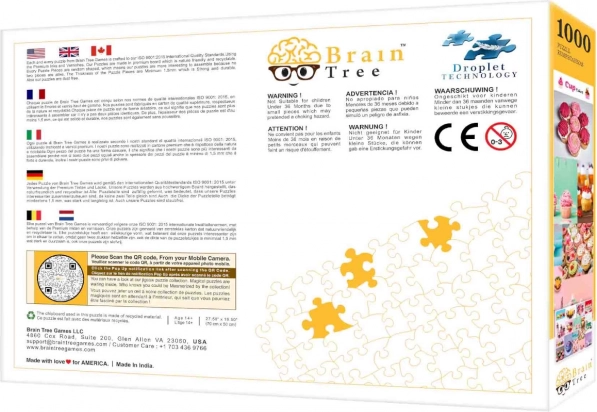 Duik in de wereld van zoete lekkernijen met de Brain Tree Cupcakes-puzzel, die 1000 willekeurig uitgesneden stukjes biedt. Dankzij de matte afwerking komt elk kleurrijk detail van het beeld tot zijn recht onder alle lichtomstandigheden. Elke verpakking bevat ook een poster met de corresponderende afbeelding en praktische kartonnen vakjes om de stukjes te sorteren.