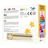 De stukjes zijn willekeurig gesneden en vormen zo een gevarieerd scala aan vormen die het puzzelen verrijken met ongewone ervaringen.