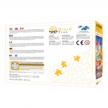 Elke verpakking bevat een poster, kartonnen lade en een standaard voor de deksel van de doos, wat het puzzelproces vergemakkelijkt.