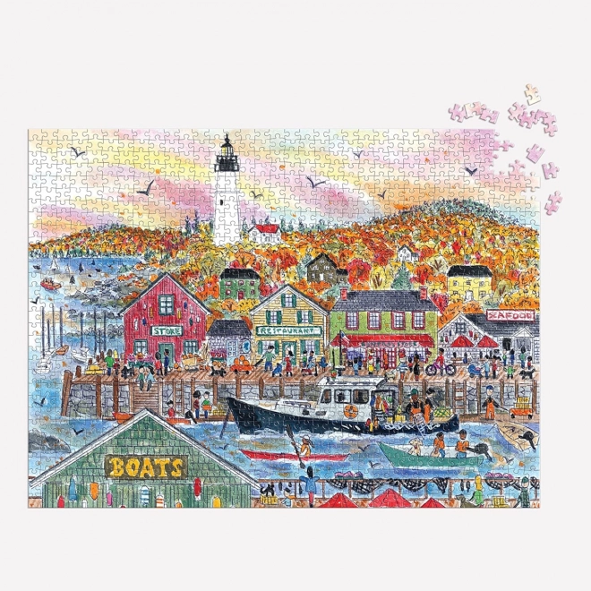 Ontdek een schilderachtige haven, een vuurtoren en kleurrijke huisjes die de sfeer van Nieuw-Engeland oproepen. Nauwkeurig gesneden stukjes van hoogwaardig gerecycled karton passen perfect in elkaar en het matte oppervlak geeft kleuren en details realistisch weer zonder storende reflecties. In de doos vind je ook een voorbeeldposter met de afbeelding en informatie over de maker, wat het leggen vergemakkelijkt en je inspiratie voedt.