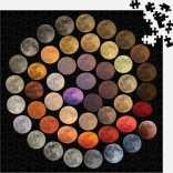 Het motief is samengesteld uit astrofoto’s van Marcella Julia Pace, gemaakt op verschillende locaties in Italië gedurende tien jaar. Elke opname laat zien hoe de kleuren van de volle maan veranderen – van rood en geel bij de horizon tot zeldzame blauwtinten veroorzaakt door stofdeeltjes in de atmosfeer.