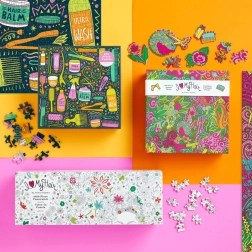 De wereldberoemde kunstenares gaf de puzzel een eigenzinnige stijl vol bloemen en haarpatronen die ook ingelijst prachtig tot hun recht komen.