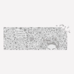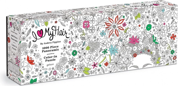 De panoramische puzzel I Love My Hair combineert het plezier van puzzelen met de creativiteit van inkleuren. Het zwart-witmotief met bloemen en haarornamenten nodigt uit om je fantasie te uiten – potloden of stiften veranderen het beeld in jouw unieke decoratie.