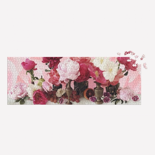 De panoramische puzzel Endless Love brengt een elegant bloemstilleven vol tulpen en pioenrozen in zachte tinten roze en groen. Dankzij eersteklas druk en een matte afwerking komen details en kleurintensiteit prachtig tot hun recht, waardoor het leggen even mooi is als het eindresultaat. De auteur is de Amerikaanse kunstenares en fotografe Ashley Woodson Bailey, bekend om haar verfijnde botanische composities.