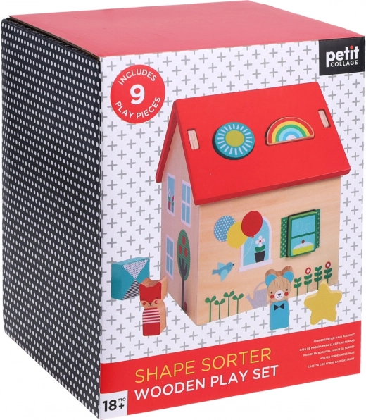 Schattig houten huisje van PETIT COLLAGE met een slimme activiteit voor de allerkleinsten: het sorteren van 9 kleurrijke dieren en vormen. Stimuleert vormherkenning, fijne motoriek en sensorische ontwikkeling. Het dak is gemakkelijk afneembaar voor spel aan de binnenkant. Gemaakt van 100% FSC®-hout – robuuste en duurzame uitvoering die vriendelijk is voor de natuur.