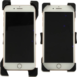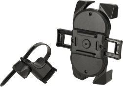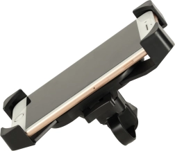 Vier hoekgrepen en een stevige constructie van duurzaam kunststof houden het apparaat veilig op zijn plaats, ook op oneffen terrein. De brede compatibiliteit (van ca. 12 × 6 cm tot 18 × 9 cm) dekt de meeste smartphones en compacte navigatiesystemen.