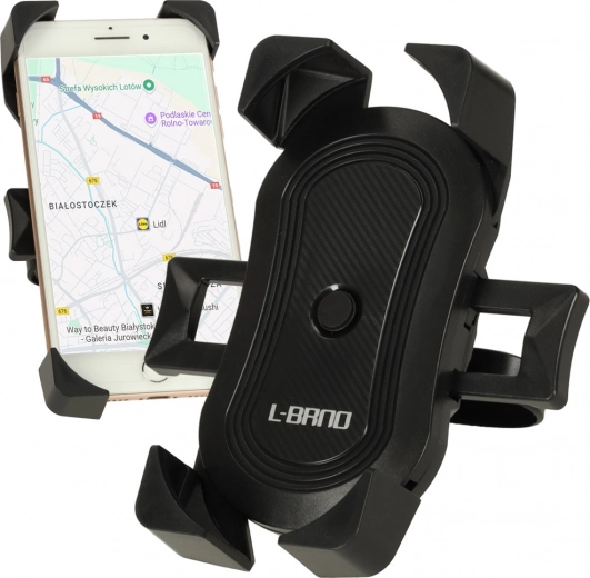 De robuuste L-BRNO telefoonhouder is ontworpen voor stabiele en veilige bevestiging tijdens het rijden. Installatie is eenvoudig: de verstelbare riem gaat om het stuur en wordt met een moer stevig vastgezet. Het plaatsen van de telefoon kost seconden: met de zijknoppen open je de armen, na het plaatsen drukt de telefoon het centrale vergrendelknopje in en de armen passen zich automatisch aan.