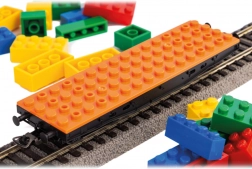 De set bevat bouwbare wagons die aangepast kunnen worden met kunststof blokken, wat creativiteit en variabiliteit in het spel bevordert.