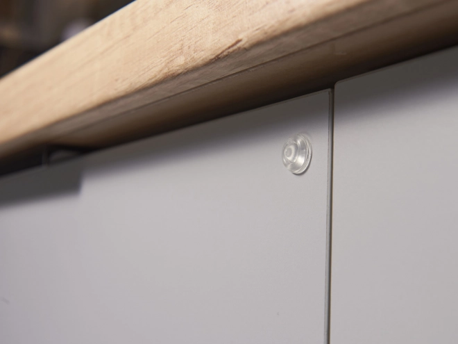 Transparante siliconen stootdoppen gaan op in het oppervlak en beschermen wanden en meubels zonder het design te verstoren.