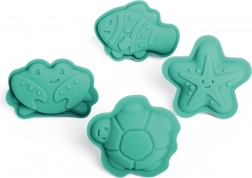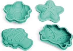 De set bevat vier verschillende siliconen vormen in de vorm van een krab, vis, zeester en schildpad voor maximale creativiteit van je kinderen.