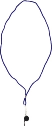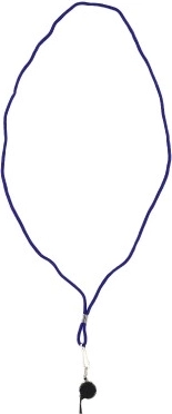 De blauwe textielkoord maakt het mogelijk om de fluit om de nek te dragen, zodat hij altijd gemakkelijk toegankelijk is.