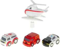 Bevat drie voertuigen: ambulance, brandweerwagen en politieauto, waarmee verschillende reddingsmissies en dynamische scenario's kunnen worden gesimuleerd.