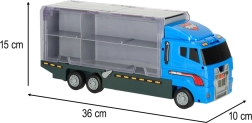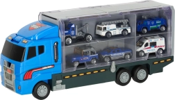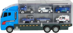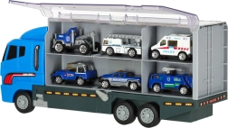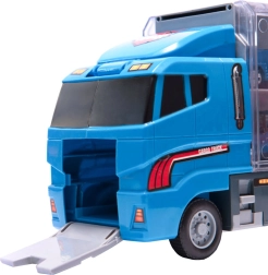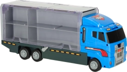 De grote blauwe vrachtwagen combineert de functie van opbergruimte met de mogelijkheid om te spelen. Het kan tot 14 kleine metalen autootjes vervoeren, die deel uitmaken van de verpakking. De autootjes imiteren realistische politie- en noodvoertuigen. De vrachtwagen heeft twee kanten met transparante deurtjes en veiligheidssloten om ervoor te zorgen dat de autootjes niet uitvallen tijdens het rijden. Bovendien bevat het een autolanceerder aan de voorkant die extra dimensie aan het spel toevoegt.