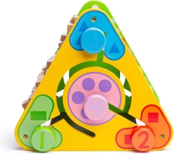 Deze actieve driehoek van BIGJIGS BABY combineert educatie en spel in één compact en duurzaam geheel. Dankzij de stevige uitvoering raakt er geen onderdeel kwijt en kunnen kinderen veilig kleuren, vormen, cijfers en hun eerste Engelse woordjes ontdekken. Het kleurrijke design trekt de aandacht en ondersteunt concentratie.