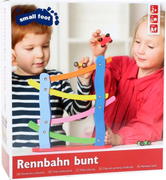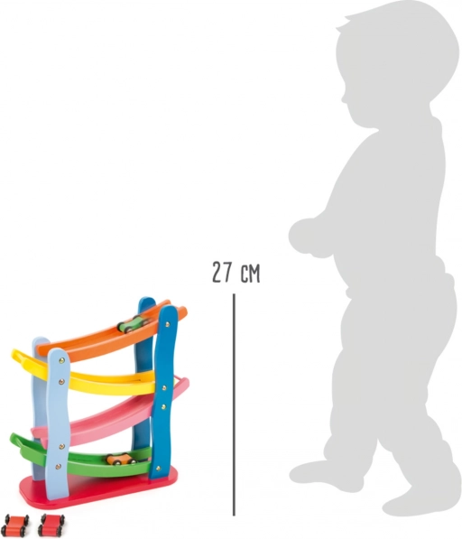 Houten racebaan voor kinderen is een kleurrijk speelgoed dat urenlang plezier biedt. Met behulp van de kleurrijke autootjes ontwikkelen kinderen hun motoriek en leren ze kleuren herkennen terwijl ze snel naar beneden racen over de stevige houten banen.