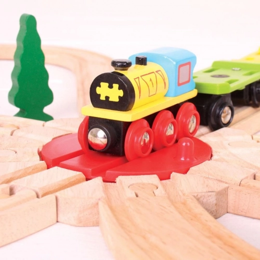 De Bigjigs Rail draaischijf is gemaakt van verantwoord verkregen natuurlijke materialen en is volledig compatibel met de meeste gangbare houten treinbanen. Nauwkeurige afwerking zorgt voor een soepele werking en eenvoudig aansluiten van de rails.