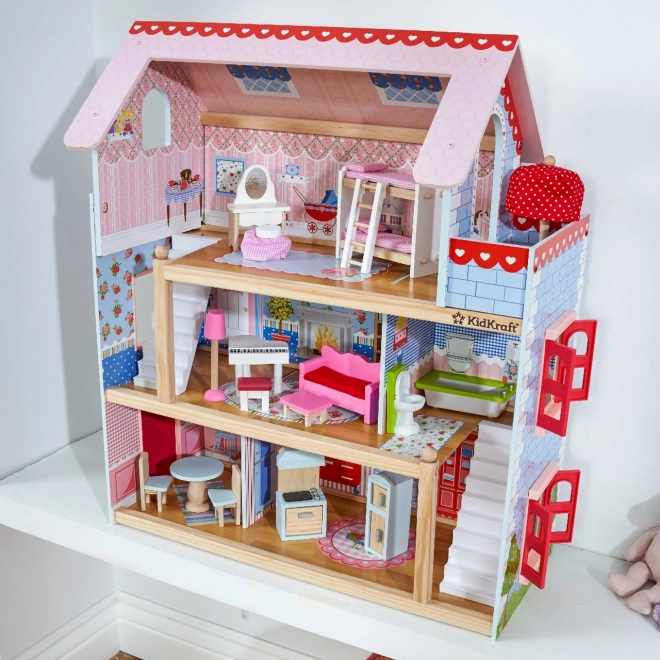 Het KidKraft Chelsea poppenhuis verrukt met rijke details en doordachte inrichting. Drie verdiepingen met vijf kamers en een balkon nodigen uit tot open-ended spel, terwijl kleurrijke accessoires en realistische elementen de fantasie en fijne motoriek stimuleren. Inclusief 16 meubelstukken voor direct speelplezier.