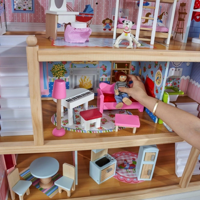 Het poppenhuis biedt 3 verdiepingen en 5 kamers met een balkon – de ideale ruimte voor creatief spel en het bedenken van eigen verhalen.