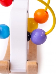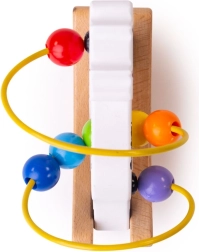 Deze compacte motorische doolhof in het ontwerp van een vrolijk koetje biedt kinderen vanaf 12 maanden veilig en stimulerend speelplezier. Het schuiven van de kralen over de stevige metalen geleider traint de precisie van de greep, vingerbehendigheid en coördinatie van bewegingen, terwijl de schommelende basis de aandacht vasthoudt en het evenwichtsgevoel ontwikkelt.