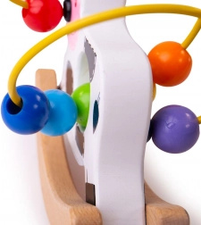 Schattige houten motorische doolhof in de vorm van een koetje op een schommel ondersteunt de fijne motoriek, oog-handcoördinatie en concentratie. Kleurrijke kralen op een stalen draad nodigen uit om te schuiven, het koetje schommelt zachtjes en zo ontwikkelen kinderen vaardigheden via speels leren. Gemaakt van hoogwaardig hout, verantwoord verwerkte materialen en in overeenstemming met de Europese veiligheidsnormen.