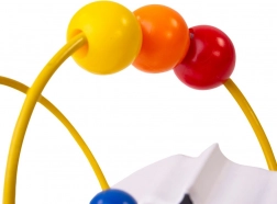 De bontgekleurde kralen op de stevige draad moedigen aan om te schuiven en ontwikkelen zo de greep, oog-handcoördinatie en geduld.