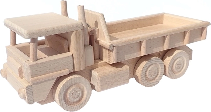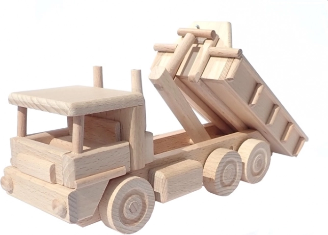 Kwalitatieve houten vrachtwagen met container van het merk Ceeda Cavity, gemaakt van beukenhout zonder chemische behandelingen, enkel gewaxt en gepolijst voor een natuurlijke uitstraling. Voorzien van afgeronde randen, bewegende wielen en geschikt voor in de zandbak – een veilige en duurzame speelgoedauto voor kinderen vanaf 3 jaar.