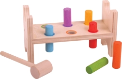 Dit klassieke houten hamerspel van Bigjigs Baby enthousiasmeert kinderen met een eenvoudig principe – de pinnetjes worden met de hamer in de gaten geslagen, daarna hoef je de bank alleen om te draaien en kan de pret opnieuw beginnen. Heldere kleuren prikkelen de zintuigen en ondersteunen de focus.