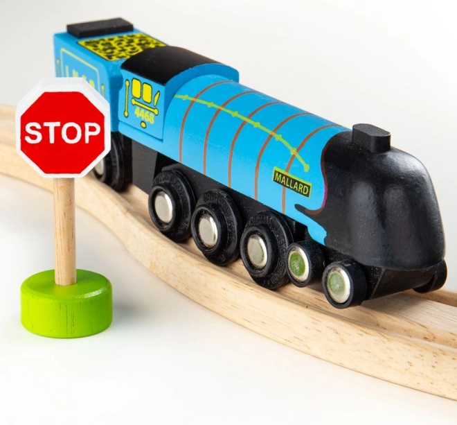 Met deze houten replica van de legendarische Mallard-locomotief beleven kinderen urenlang plezier. Hij is gemaakt van hoogwaardige en verantwoord verkregen natuurlijke materialen. Het magnetische systeem maakt het eenvoudig om met andere wagons te koppelen, waardoor creatief spel wordt gestimuleerd.