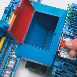 De hopper kan worden gevuld met zand of ander droog strooimateriaal en met één hendelbeweging weer worden geleegd – ideaal voor realistisch spel.