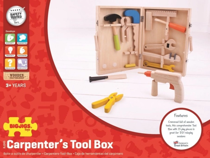 Geweldige houten gereedschapskoffer voor alle jonge doe-het-zelvers die hun ambachtelijke vaardigheden willen ontwikkelen. Bevat een hamer, tang, boor en moersleutels, allemaal van hoogwaardige materialen.