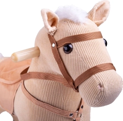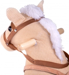 Het beige hobbelpaard is ontworpen om kinderen een veilige en comfortabele rit te bieden. Het zachte zadel en de teugels van fijne corduroy nodigen uit om aan te raken en het spel stimuleert niet alleen de verbeelding, maar ook de motorische vaardigheden. De robuuste houten basis zorgt voor zeker schommelen zonder ongewenst wiebelen.