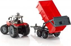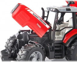 Beleef realistisch boerderijspel met de MASSEY FERGUSON 7480 tractor en kippende plateauwagen. Het model op schaal 1:16 valt op door de precieze afwerking, de functionele besturing die via een verlengd stuur door het cabinedak wordt bediend, en de te openen onderdelen waarmee je onder de motorkap en in de cabine kunt kijken.