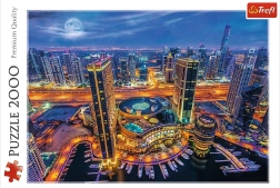Puzzel van 2000 stukjes met een schitterend nachtelijk uitzicht op het verlichte Dubai. Na het leggen ontstaat een afbeelding van 96x68 cm.