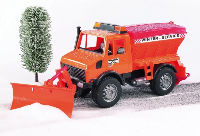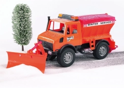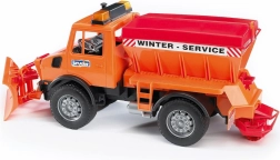 De Mercedes-Benz Unimog van BRUDER is een robuuste strooier met sneeuwschuif, ontworpen voor winterwerkzaamheden. Dankzij de precieze uitvoering beleven kinderen realistisch speelplezier – van sneeuwruimen tot het strooien van de weg. De voorste pendelas zorgt voor uitstekende wendbaarheid en de schuif is niet alleen draaibaar, maar ook eenvoudig afneembaar.