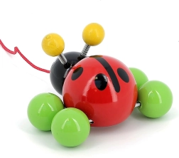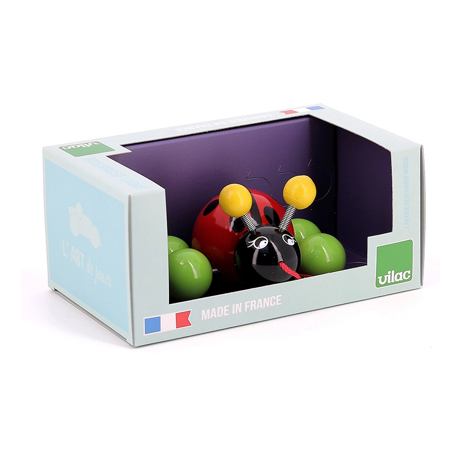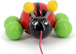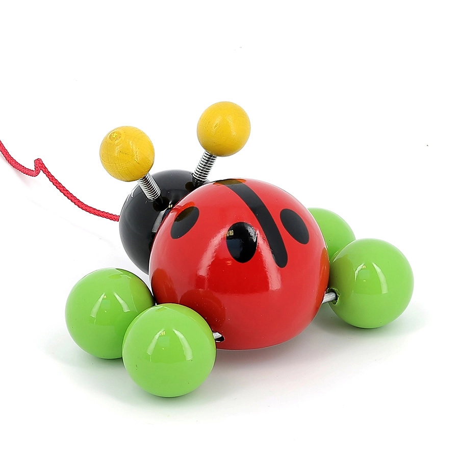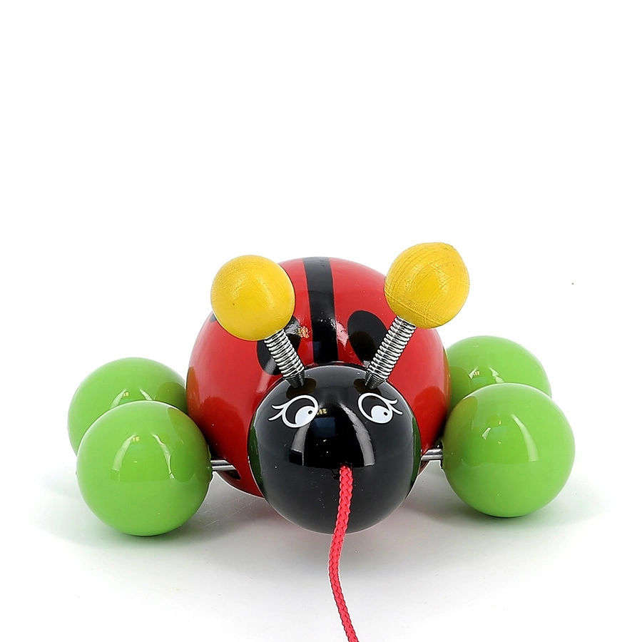 Dit klassieke treklieveheersbeestje van gelakt hout valt op door het kleurrijke design, het gladde oppervlak en de veerkrachtige voelsprieten die vrolijk meedeinen tijdens het trekken. Dankzij de ronde wieltjes rijdt het soepel en trainen kinderen spelenderwijs hun stapcoördinatie en zelfvertrouwen tijdens het lopen.