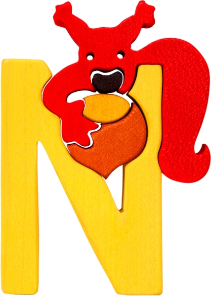 Leer kinderen het alfabet op een speelse manier met de houten inlegletter N met eekhoornmotief. Massief hout, veilige verven en ontwikkeling van motoriek en logisch denken maken dit speelgoed een uitstekende keuze voor de eerste kennismaking met letters.