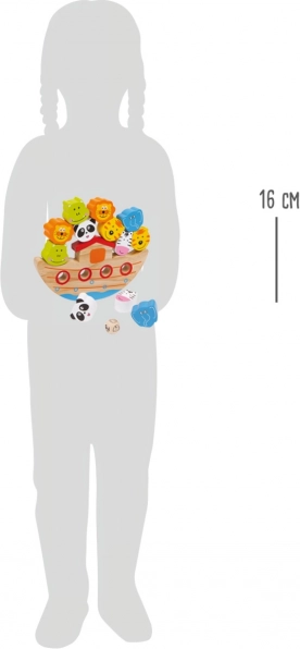 Ontdek de charme van het balansspel met een houten ark dat zowel kinderen als volwassenen boeit. Het doel is om kleurrijke dieren op de boot te stapelen zonder dat deze omkantelt. Dit spel ontwikkelt de fijne motoriek, oog-handcoördinatie en leert kinderen geduld en strategisch denken.