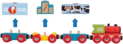 Breid je houten treinbaan uit met een stijlvolle goederentrein met lading en een praktische railset. In de doos zitten 2 middenrails en 1 eindrail voor snelle aansluiting op de bestaande baan. Magnetische koppelingen zorgen voor eenvoudige verbinding van de wagons en met andere treinstellen.
