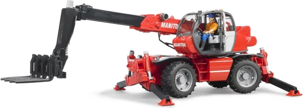 Gedetailleerd model van de telescooplader MANITOU MRT 2150 van het merk Bruder, ideaal voor jonge bouwers en verzamelaars. Voorzien van een 360° draaibare cabine, vierwielbesturing voor een kleine draaicirkel en verwisselbare aanbouwdelen (schep, vorken, palletkorf). De stabiliteit wordt gewaarborgd door vier telescopische steunpoten. Hoogwaardige afwerking van duurzaam kunststof, gemaakt in Duitsland.