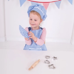 Ontmoet de blauwe kookset voor kinderen, een geweldige toevoeging voor kleine koks die graag helpen bij het koken of bakken. In deze set vind je alles wat je nodig hebt: