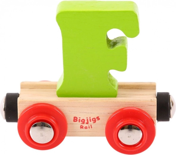 De Bigjigs Rail wagon met letter F maakt deel uit van de kleurrijke en creatieve serie houten treinen. Elke letter is verwijderbaar en uitwisselbaar met andere, wat kinderen in staat stelt hun eigen namen of boodschappen te creëren. Educatief speelgoed dat de ontwikkeling van verbeelding, behendigheid en coördinatie bevordert is samengesteld uit hoogwaardige, verantwoord verkregen natuurlijke materialen. Magnetische koppelingen zorgen voor compatibiliteit met andere Bigjigs Rail wagons en locomotieven en andere houten treinrailsystemen.