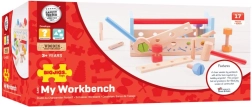 De Bigjigs Toys speelgoedset brengt een kwalitatieve houten werkbank met gereedschap, die op een leuke manier de creatieve vaardigheden en motorische ontwikkeling van kinderen stimuleert. Bevat een hamer, een sleutel en diverse schroeven die kinderen gemakkelijk kunnen gebruiken voor diverse bouwactiviteiten.