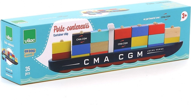Dit stijlvolle houten containerschip biedt realistisch spel met containers op pennen die je naar wens kunt stapelen, sorteren en verplaatsen. Kinderen oefenen de oog-handcoördinatie en leren de basis van logistiek en sorteren van kleuren en vormen.