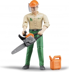 Verrijk uw BRUDER collectie met de Bworld figuur houthakker en beleef realistische speelervaringen en avonturen in het bos. Het figuur is volledig beweegbaar en past perfect in de cabines van vrachtwagens, tractors en andere BRUDER machines. De set bevat essentiële uitrusting zoals een kettingzaag en een beschermende helm met vizier.
