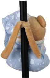 De beer heeft een blauw pyjama met sterren- en maanmotief dat een rustgevend gevoel geeft en is de ideale metgezel voor de kinderkamer.