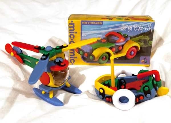 Het Mic-o-Mic bouwpakket biedt een slimme en eenvoudige verbinding van de afzonderlijke onderdelen, waardoor kinderen hun eigen geweldige speelgoed kunnen maken. De modellen zijn stevig en zonder scherpe randen, wat ze ideaal maakt voor dagelijks spelen. De wielen van de modellen draaien, wat extra speelsheid toevoegt.