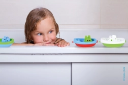 Drie kleurrijke bootjes drijven en kunnen in bad, in het zwembadje en op het droge worden gebruikt. Eenvoudige vormen en vrolijke kleuren nodigen uit tot spelen.