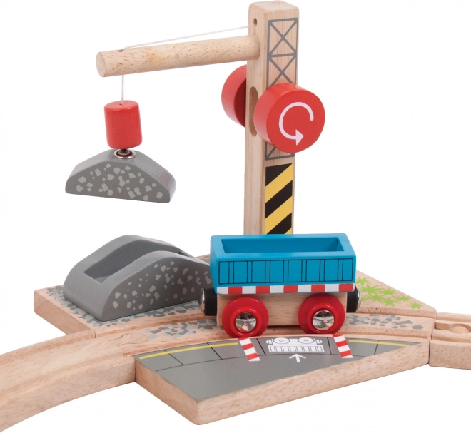 Ontdek de houten treinbaan met kraan van Bigjigs Rail, die de fantasie en vaardigheid van kinderen stimuleert. Dankzij het magnetische katrolsysteem is de kraan perfect voor het laden en vervoeren van zware ladingen op de wagon.