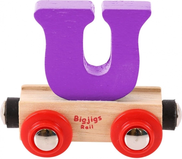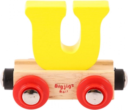 Breid je treinbaan uit met deze unieke wagon van Bigjigs Rail met de letter 'U'. Elke letter is verkrijgbaar in verschillende kleuren, waardoor kinderen tijdens het spelen hun eigen woorden, namen of titels kunnen maken. Dankzij de magnetische koppelingen is de wagon gemakkelijk te verwisselen en zonder problemen te koppelen met andere onderdelen.